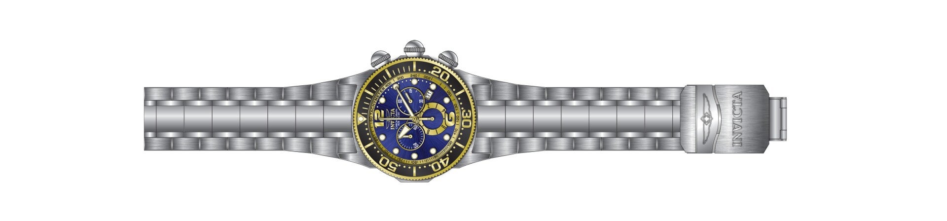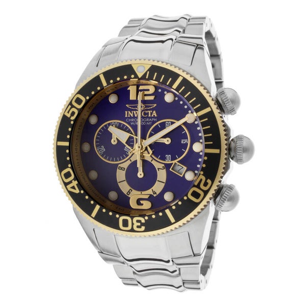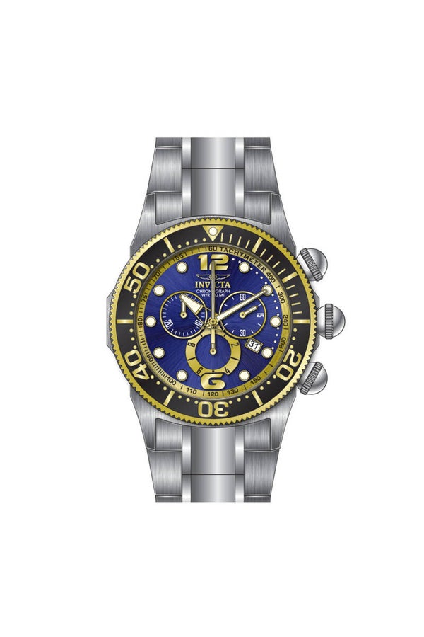 This impressive Invicta Lupah watch features a precise Quartz movement as well as a gold case. Its gold, metal dial is enclosed by a highly protective Mineral Crystal. This watch is finished by a strong gold, stainless steel band, and it offers 100 m water resistance.